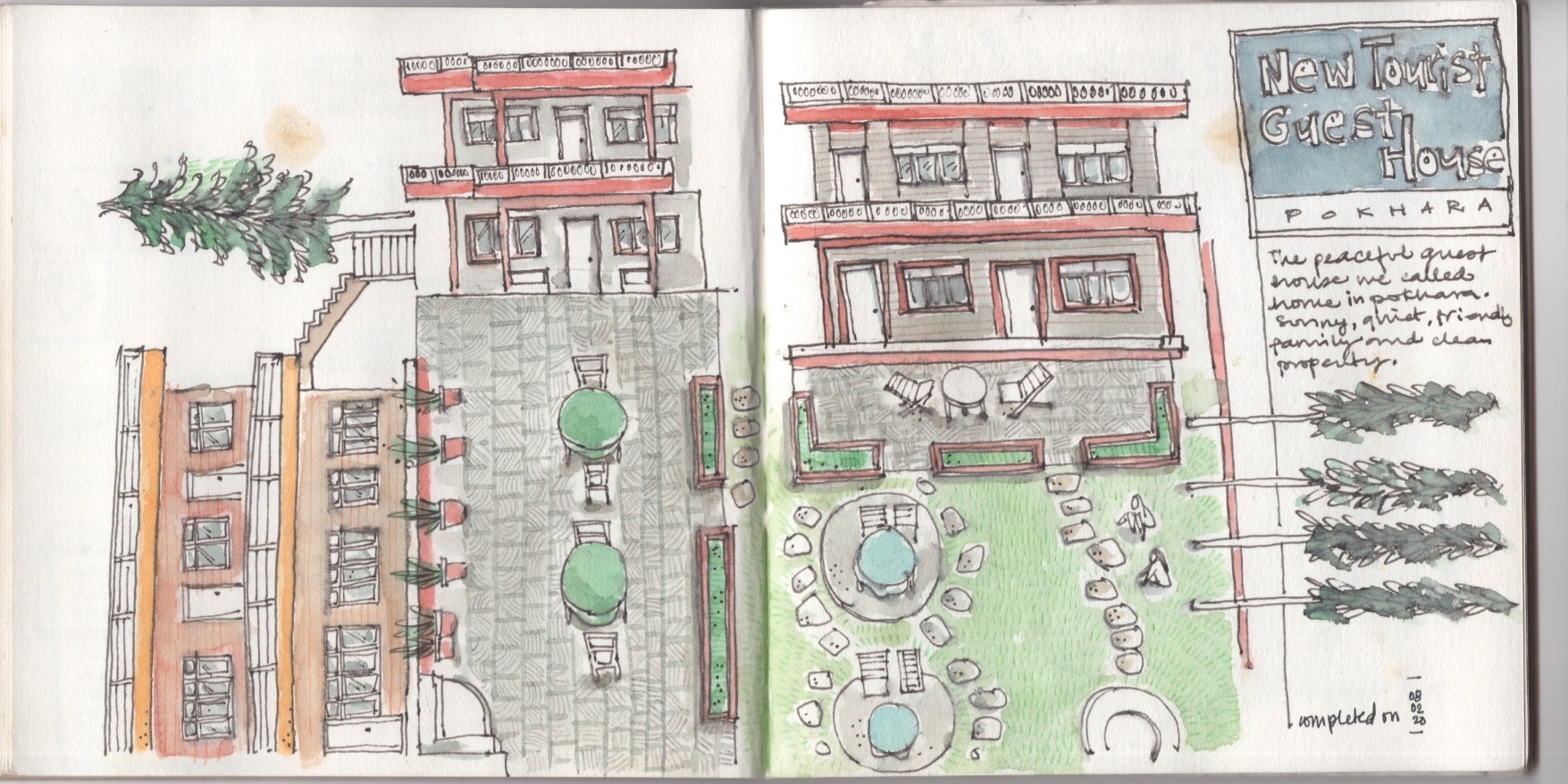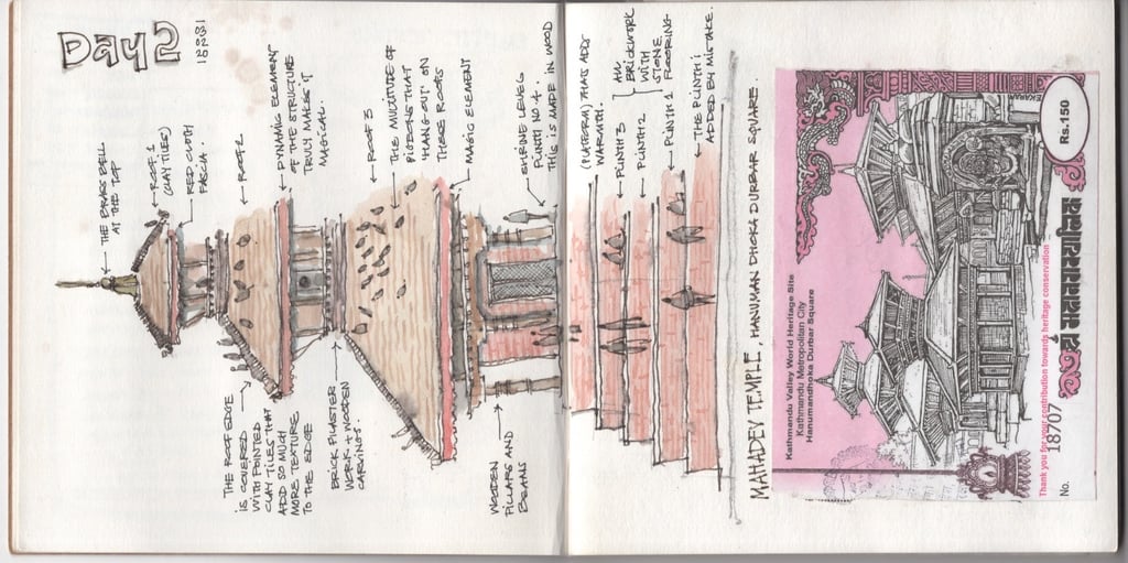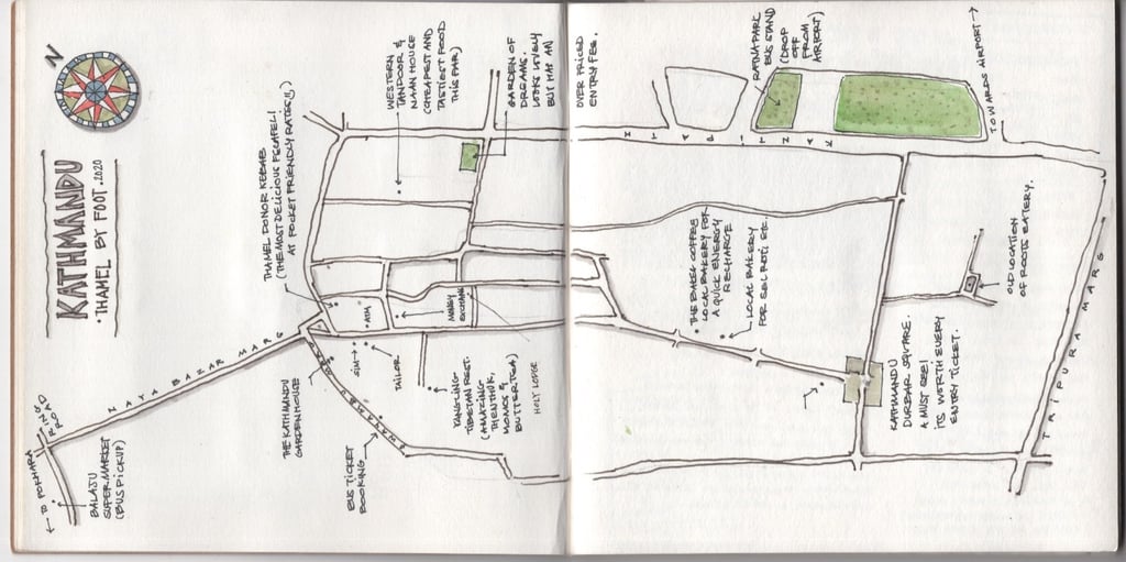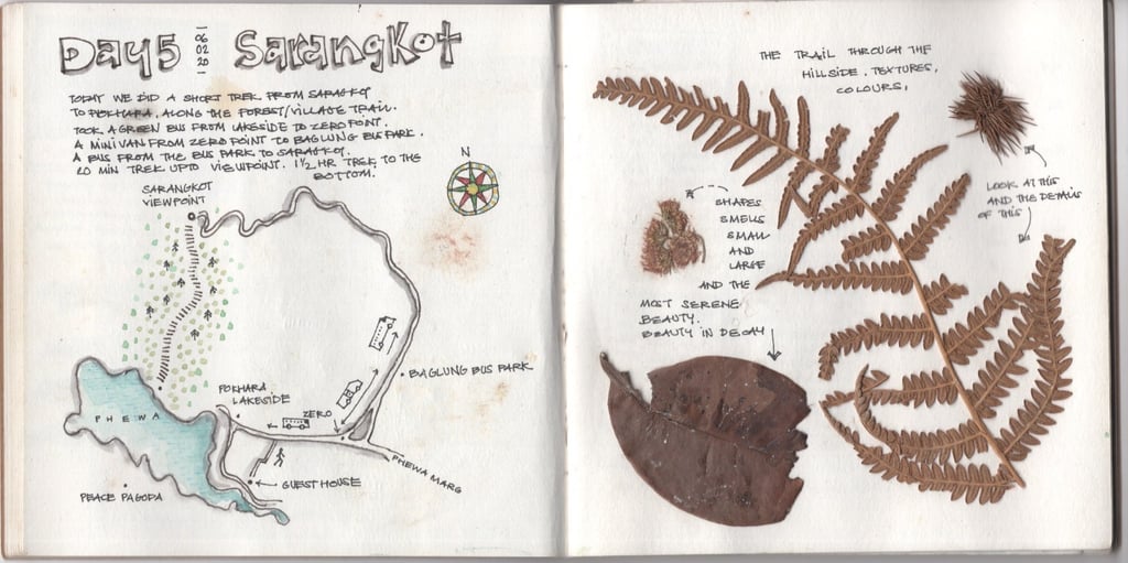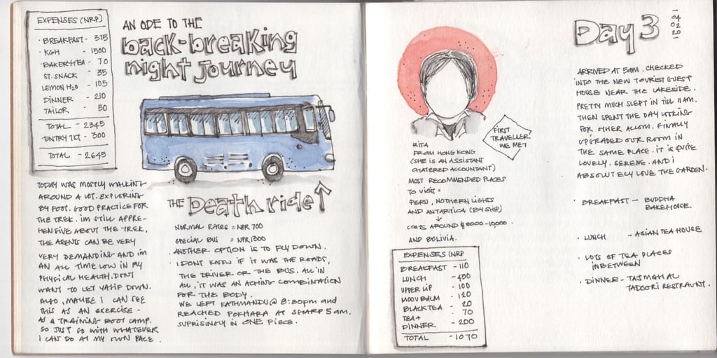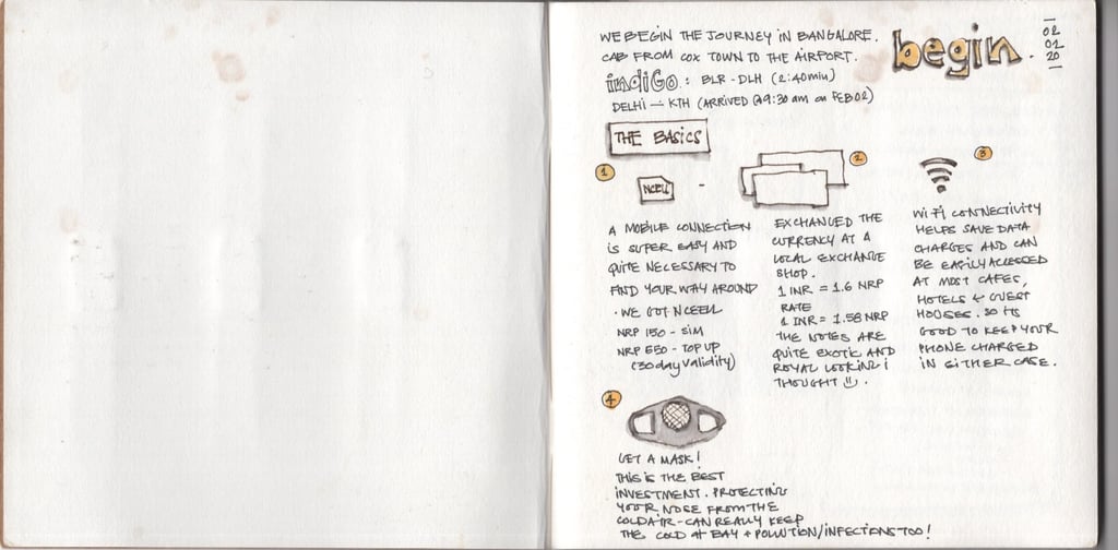 Nepal, February 2020 — my last trip before the world came to a halt with the Covid-19 pandemic. From architecture and landscapes to hand-drawn maps, extensive expense accounts, and bits of tickets and pressed flowers tucked between pages — this journal held it all.