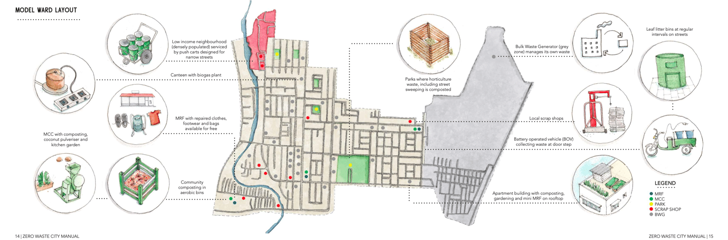 Illustrations and book design done for the Zero Waste City Manual, a toolkit that sets the precedent to establish systems of waste segregation, collection and processing in Indian cities.