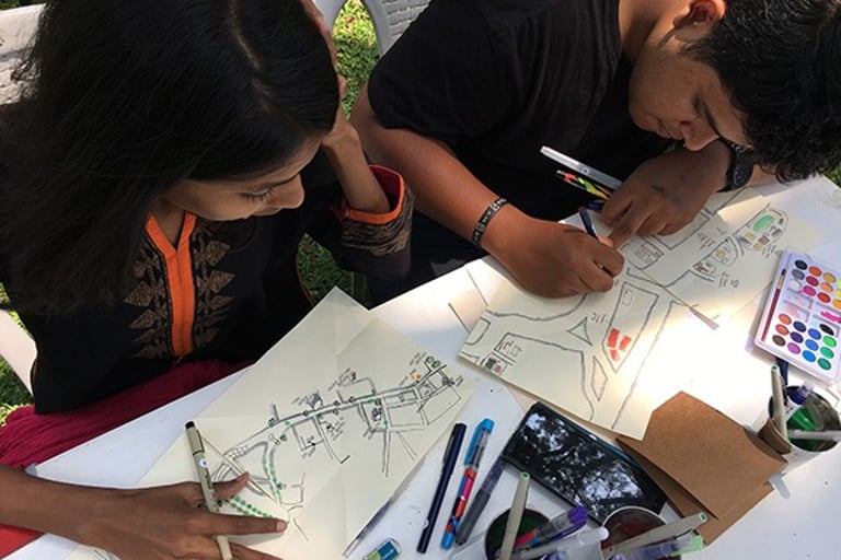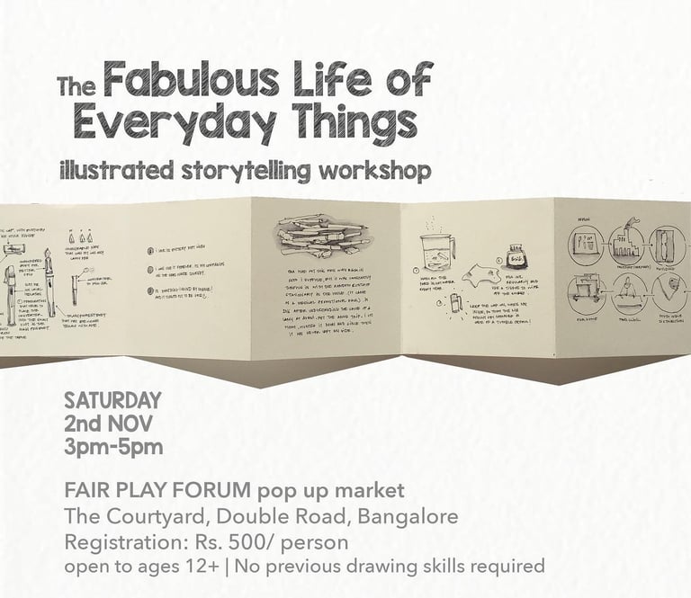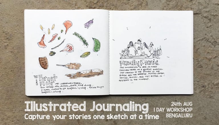 Sharing the joys of illustrated journal-keeping has become a regular part of my art practice. Over the years, I have conducted workshops for both adults and children — in small and large groups — on illustrated journaling, map-making, and visual storytelling. These sessions are spaces where I share tools, techniques, and insights into journaling and illustrated documentation, especially as a way of memory making.